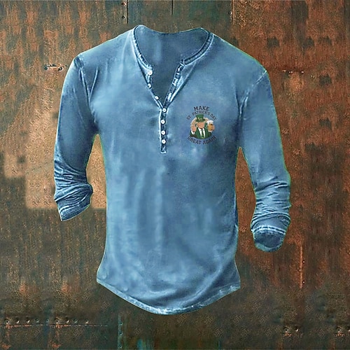 Per uomo Maglietta trifoglio di San Patrizio Camicia Henley Magliette T-shirt San Patrizio Henley Da mare Strada Manica lunga Fibbia Abbigliamento Poliestere Di tendenza Festa di San Patrizio