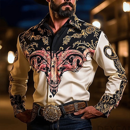 Per uomo Etnico Floreale intricato Fiori Camicia Camicia Western Camicia da cowboy Manica Lunga Vintage Retrò All'aperto Casuale Abbigliamento da lavoro Primavera Autunno Collo ripiegato Due tasche