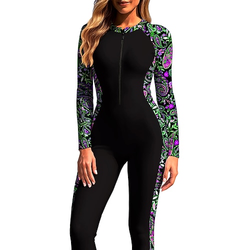 Per donna Muta da Immersione Rash Guard Costume da bagno Set di costumi da bagno Paisley Folk Protezione Solare UV UPF50 Ultra Leggero (UL) Manica Lunga Costume da Bagno Top sottomuta Con zip