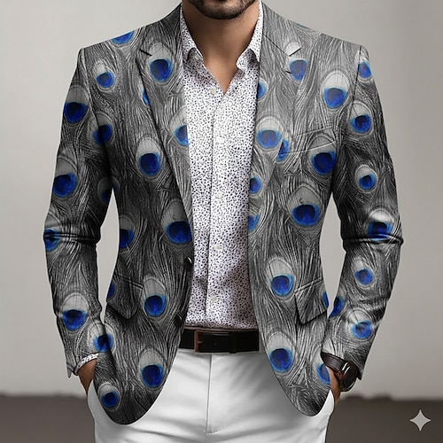 Per uomo Piume Giacca blazer Cappotto Confortevole Traspirante Artistico Casual Quotidiano Abbigliamento da sera Stampa 3D Bottoni Multi-tasche Primavera Autunno Inverno Dentellato Manica Lunga