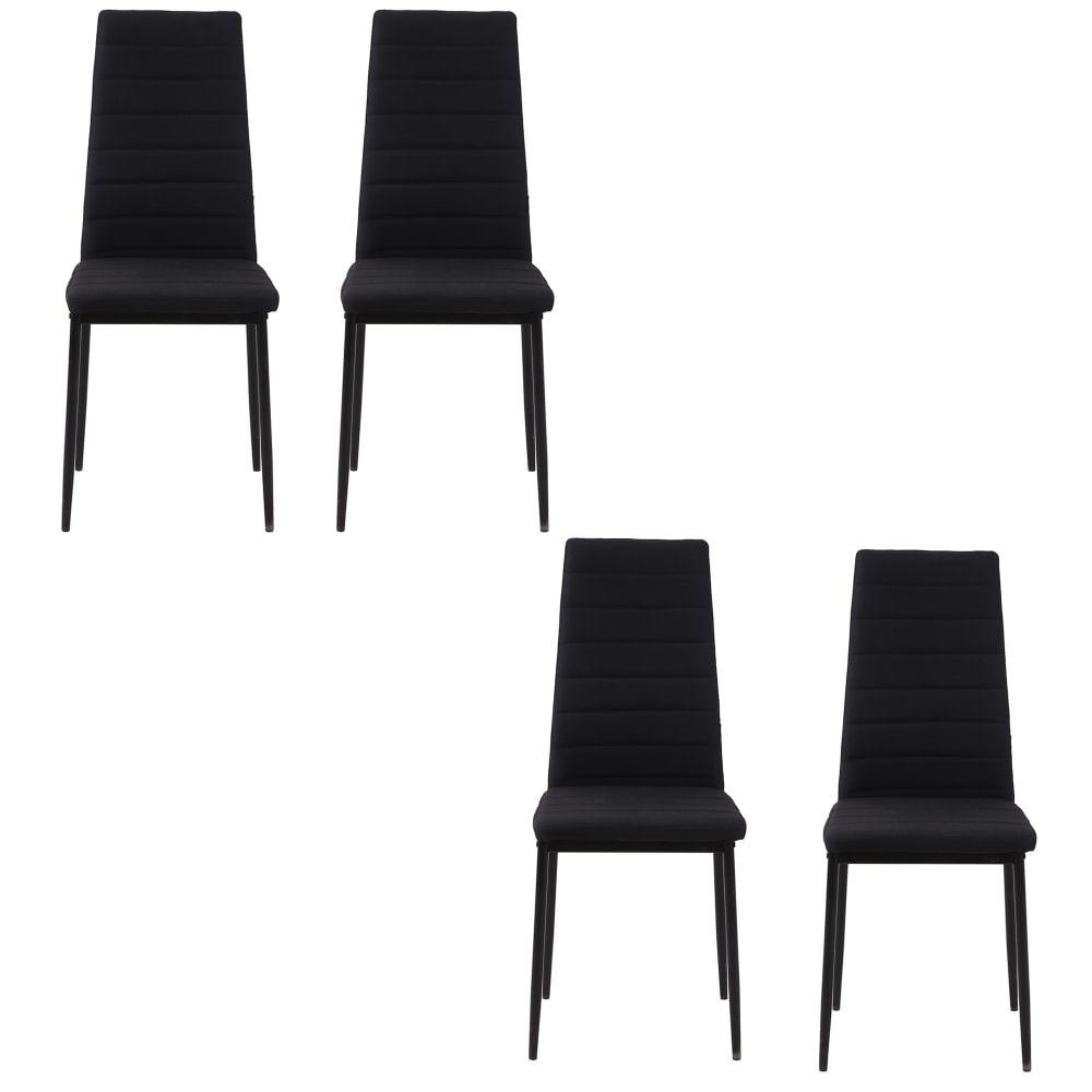 Set 4 Sedie Imbottite per Soggiorno in Metallo e Tessuto Nero
