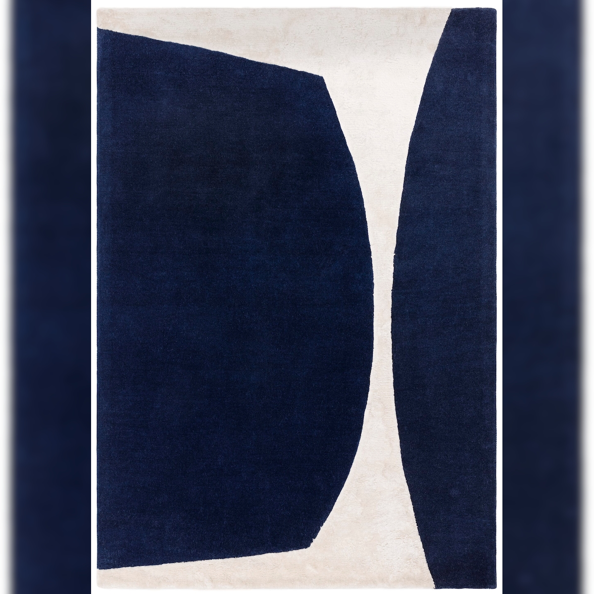 Woll-Viskose Teppich Hoch-Tief-Struktur | 160x230 cm, Florhöhe 1,6 cm | Dunkelblau | Handgetuftet | HULL-Tickton Kollektion | Kadima Design