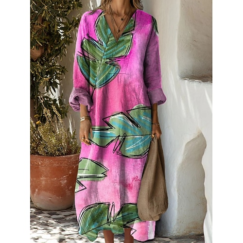 Per donna Abito maxi Vestito Estivo Abito a trapezio Vacanza Casual Boho Feste Ferie Spiaggia Vestibilità comoda Grafico Geometrico Astratto Manica Lunga Scollo a V Marrone Scuro Rosso scuro Rosso