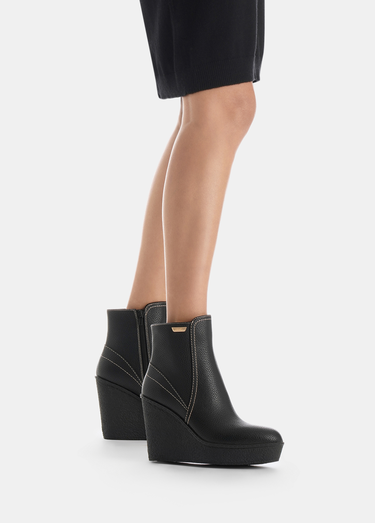Liu Jo Leder-stiefelette Mit Keilabsatz, Schwarz, 40