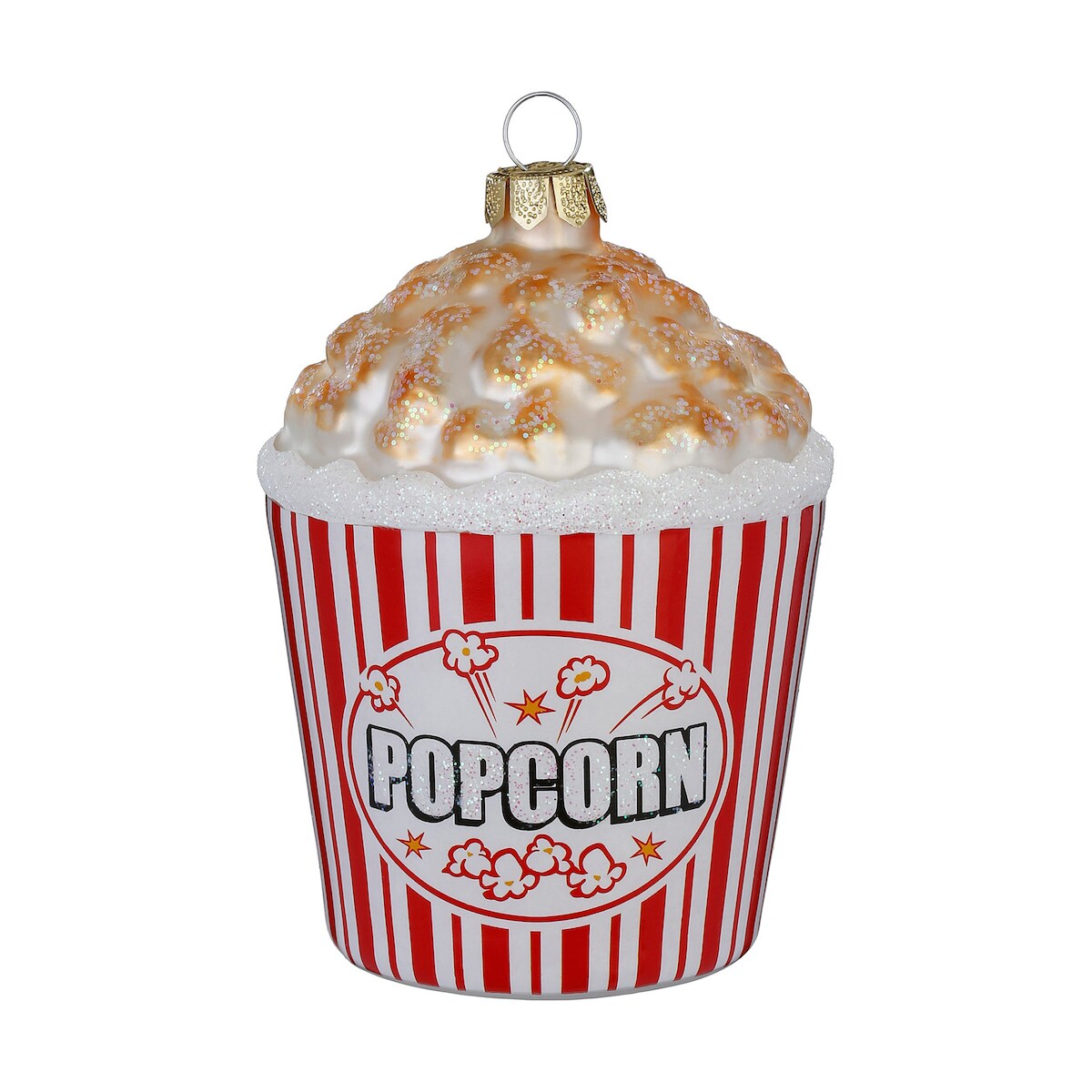 Inges Magic & Goodz Christbaumschmuck Glas 9,6cm Popcornbecher Figur zum Aufhängen - Handbemalt Weihnachtsbaum Anhänger Weihnachten Weihnachtsbaumschmuck Essen Rot Weiß