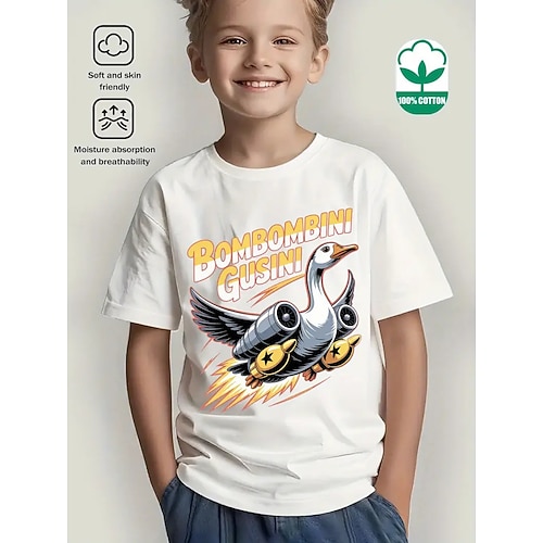 Cotone Bambini Ragazzi Blu Nero Bianco Bombombini Gusini Grafico Maglietta Blusa Girocollo Manica Corta All'aperto Abbigliamento Quotidiano Moda Streetwear Designer Stampa Estate