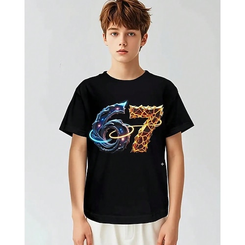 Cotone Bambini Ragazzi Blu Nero Rosso Grafico Gergo divertente 67 Maglietta Blusa Girocollo Manica Corta All'aperto Abbigliamento Quotidiano Moda Streetwear Designer Stampa Estate