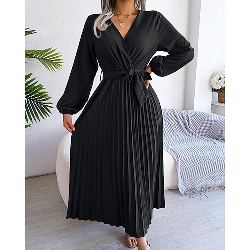 Per donna Abito Midi Abito in Raso Vestito da Festa Abito da Cocktail Moda Moderno Festa serale Feste Compleanno Vestibilità regolare Semplice Manica Lunga Scollo a V Nero Rosso Blu Reale Viola
