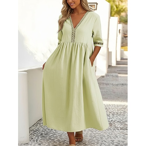 Per donna Abito Midi Abito in cotone e lino Moda Moderno All'aperto Vacanza Uscire Vestibilità comoda Semplice Mezza Manica Scollo a V Giallo neon Bianco Rosa Verde Estate Primavera