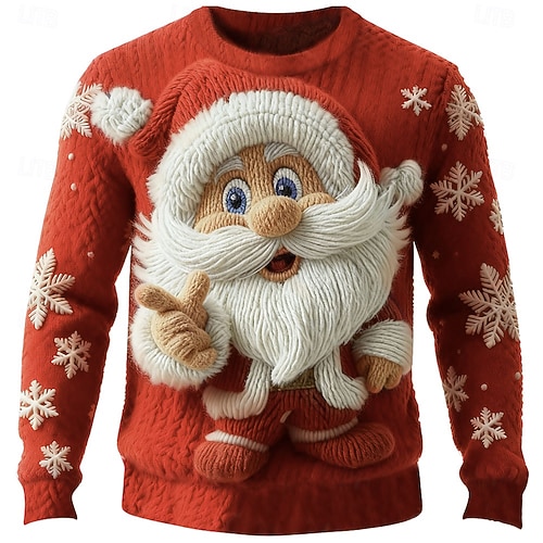 Maglione di Natale brutto Per uomo Babbo Natale Stampa Maglione Maglieria Girocollo Casual Vacanza Quotidiano Festival Tenere al caldo Manica Lunga Primavera Autunno Inverno Nero A Nero B Nero