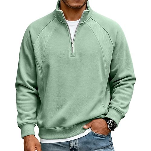 Per uomo Polo Polo con zip a un quarto Vacanza Streetwear Zip a un quarto Manica Lunga Moda Essenziale Semplice Primavera Autunno Vestibilità su misura Blu Nero Verde Grigio chiaro Caffè Polo