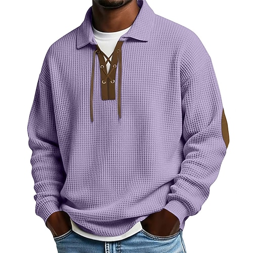 Per uomo Blocco di colori Magliette Polo a Nido d'Ape Testurizzato Manica Lunga Magliette polo Bavero Casual Scuola Athleisure Abbigliamento quotidiano Stampa 3D Autunno Inverno Blu Marrone Verde
