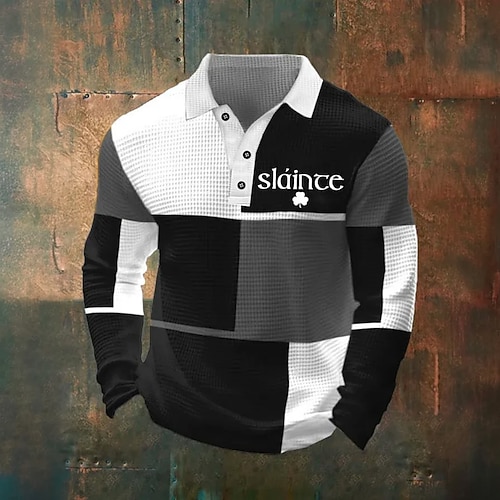 San Patrizio Per uomo Blocco di colori Trifoglio Magliette Polo a Nido d'Ape Manica Lunga Magliette polo Camicie con Colletto Casual Ferie Abbigliamento quotidiano Abito da festa Bottoni Primavera