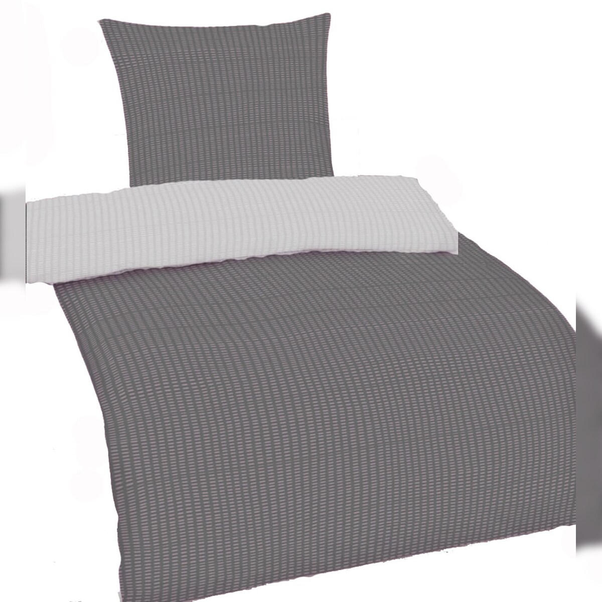 KH-Haushaltshandel Seersucker Wende Bettwäsche, 135 x 200 +80x80cm, grau Silber, Uni/einfarbig, bügelfrei