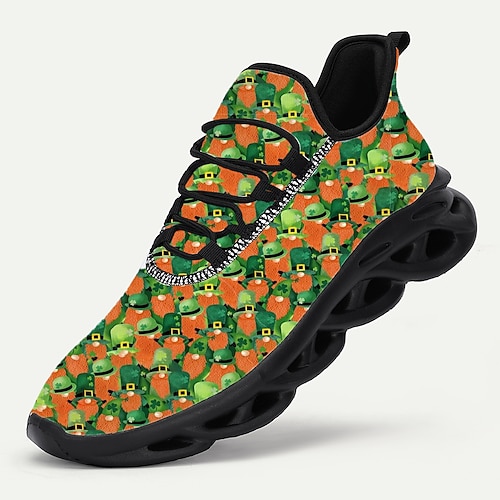 Sneakers da uomo per il giorno di San Patrizio: design con trifoglio portafortuna e gnomo, leggere e comode per i festeggiamenti di San Patrizio