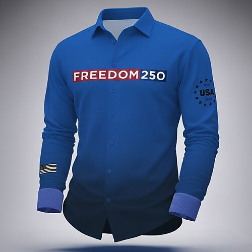Per uomo Patriottico FREEDOM 250° anniversario degli Stati Uniti Camicia Camicia a nido d'ape Camicia casual Manica Lunga Moda Casual Abbigliamento Quotidiano Ferie Estate Primavera Collo ripiegato