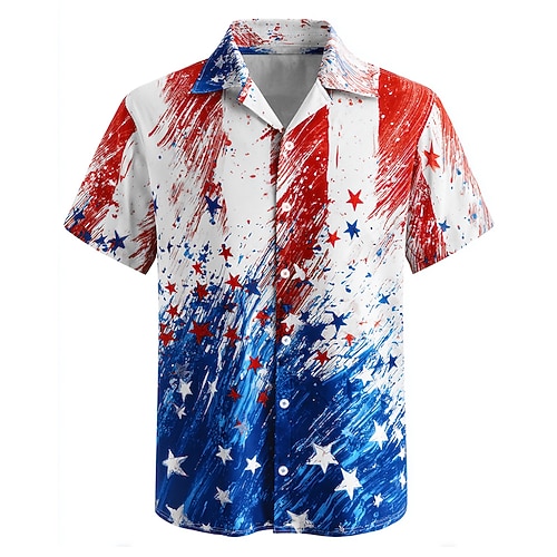 Per uomo Bandiera americana degli Stati Uniti Camicia Camicia occidentale Camicia con bottoni Manica corta Informale Da tutti i giorni Per uscire Fine settimana Autunno Collo ripiegabile Stampa
