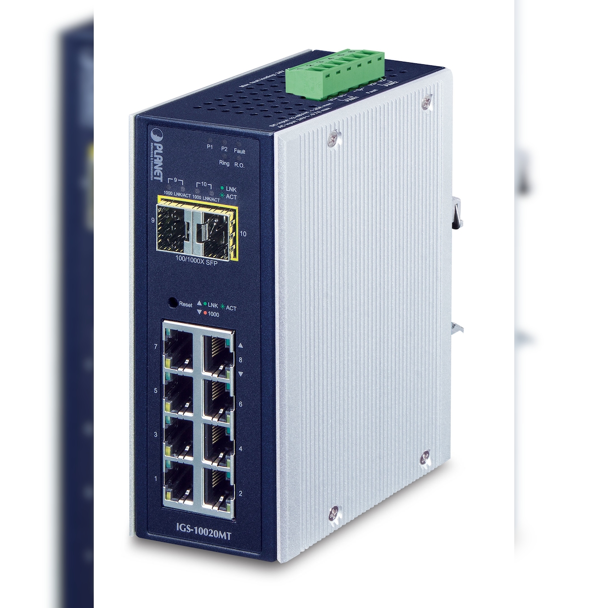 PLANET IP30 industrieller 8x 1000TP + 2x 100/1000F SFP Full Managed Ethernet Switch (-40 bis 75ø C)