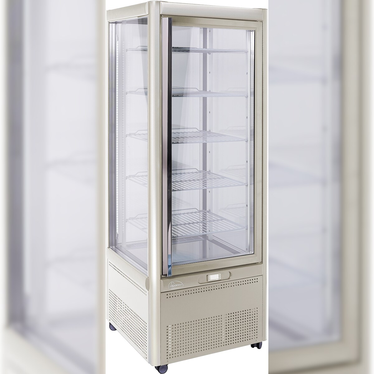 KBS Gastrotechnik KBS Panoramavitrine Prisma 401 TNV-PF (silber) mit 5 Rosten, fahrbar
