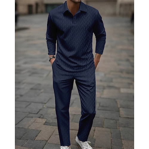 Per uomo Completi T-shirt Completi camicia e pantaloni Outfit 2 pezzi Manica Lunga Bavero Primavera Autunno Semplice Moda Casual Jacquard 2 Pezzi Vacanza Abbigliamento quotidiano Uscire Nero Bianco