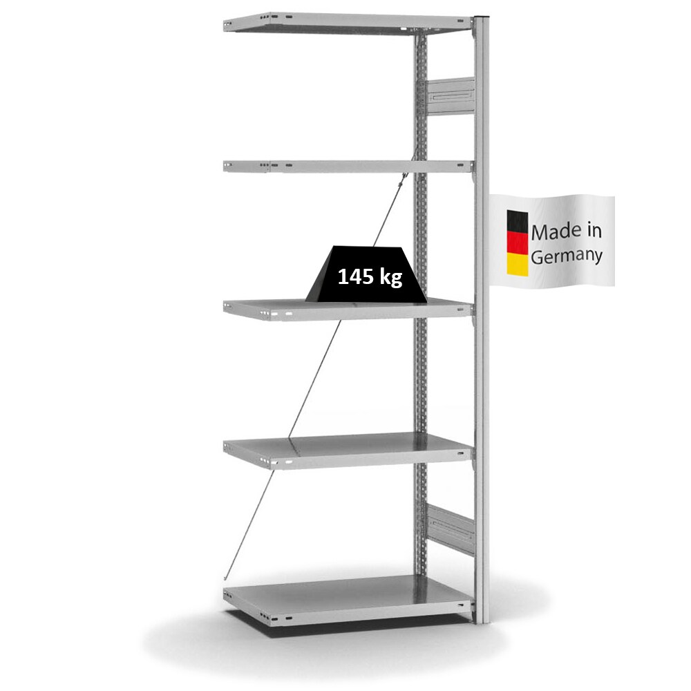 PROREGAL Fachbodenregal Stecksystem | Anbauregal | HxBxT 200x75x40cm | 5 Ebenen | Fachlast 145 kg | Einseitig nutzbar | Verzinkt
