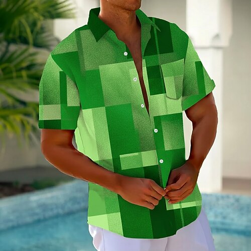 Per uomo Blocco di colori Patchwork Colore sfumato Camicia Camicia Estiva Camicia con Bottoni Manica Corta Moda Casual All'aperto Vacanza Abbigliamento Quotidiano Estate Primavera Collo ripiegato