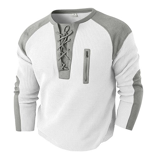 Per uomo Maglietta Waffle Maglietta Manica Lunga Girocollo Collo con lacci Autunno Autunno Inverno Tinta unica Blocco di colori Tradizionale / Vintage Casual Coulisse Casa All'aperto Sport Outdoor