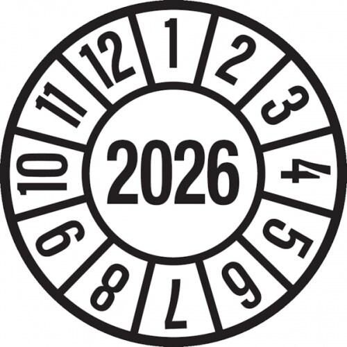 König Werbeanlagen Jahresprüfplaketten ab 26, Jahresfarben, Ø 35mm - Bogen = 10 Plaketten - 35 mm Dokumentenfolie selbstklebend