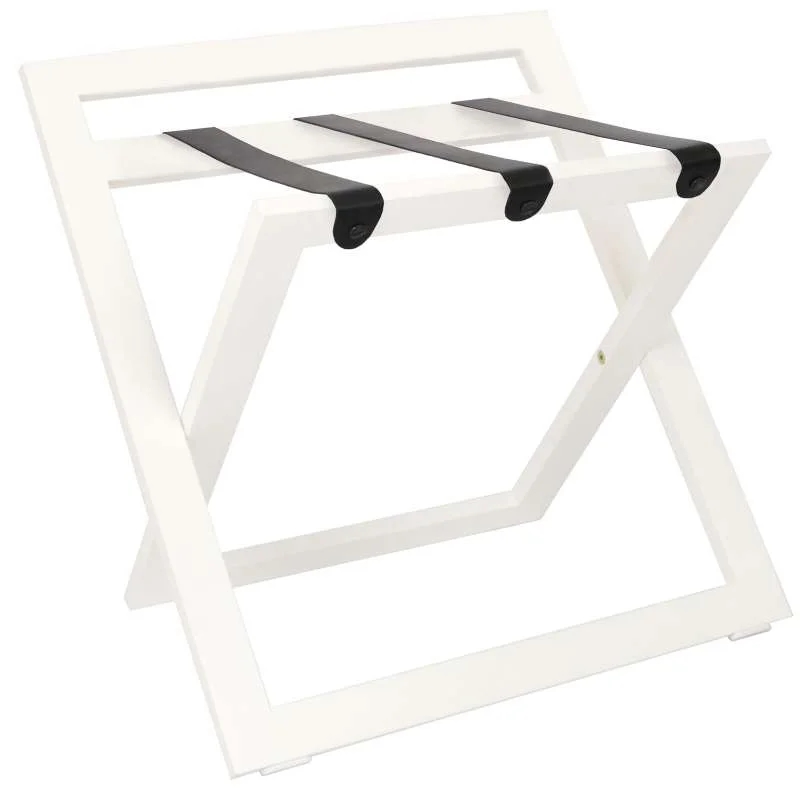 Kofferständer WOOD aus Holz mit Rückwand Buche Weiß mit Riemen Leder Schwarz