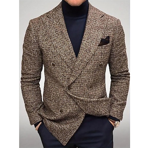 blazer da uomo retrò vintage in tweed blazer a spina di pesce cappotto sportivo regolare taglie forti monopetto due bottoni nero champagne bordeaux blu