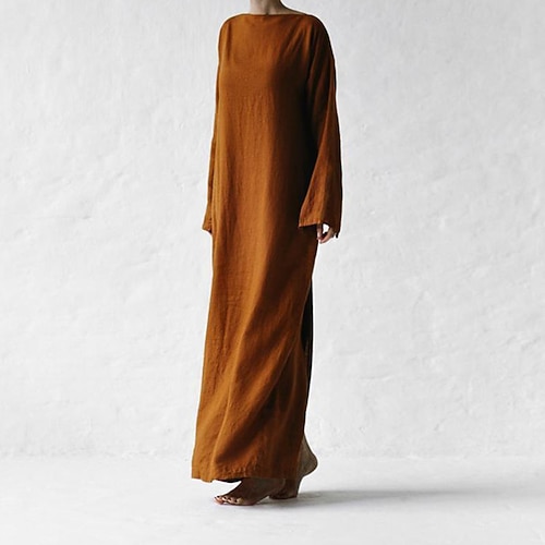 Per donna Abito Lungo Maxi Abito Vestito Casual Abito in cotone e lino Elegante Moda Moderno Quotidiano Vacanza Uscire Vestibilità regolare Semplice Manica Lunga Senza Spalle Marrone chiaro Blu scuro