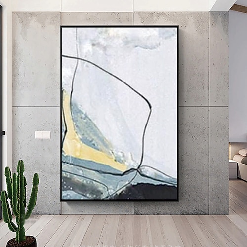 grande dipinto a mano astratto giallo bianco nero su tela dipinto a mano acrilico olio dipinto a mano per arredamento moderno soggiorno dipinto murale contemporaneo quadro da parete