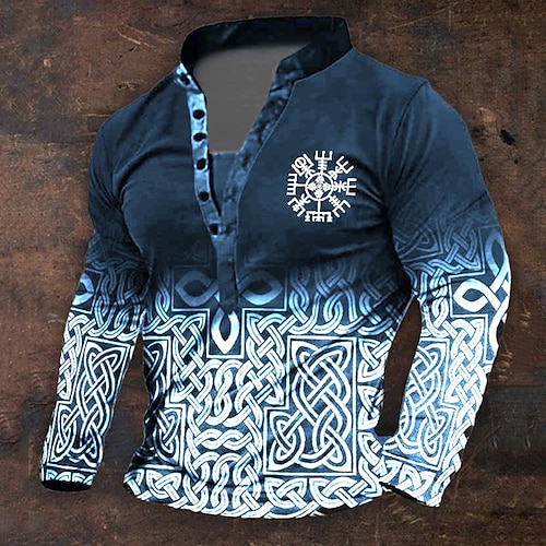 Per uomo Grafico Vichingo Maglia Henley Manica Lunga Stampa 3D Quotidiano Retrò Vintage Casual Ferie Uscire Festival Primavera Autunno Nero Blu Marrone Verde Henley Maglietta Henley