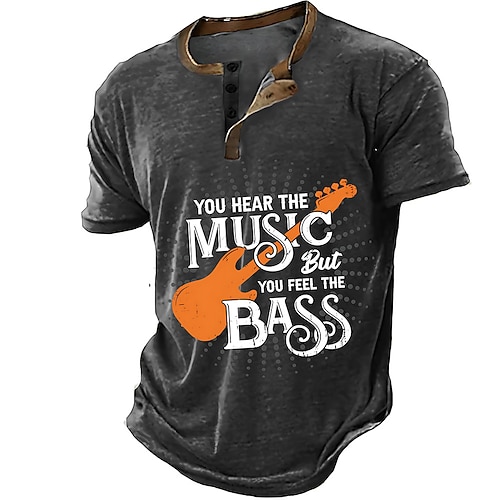 Per uomo Festival musicale Grafico Maglietta Maglia Henley Manica Corta Designer Retrò Vintage Casual Casuale Quotidiano Streetwear Estate Primavera Nero Blu marino Verde Henley Maglietta Henley
