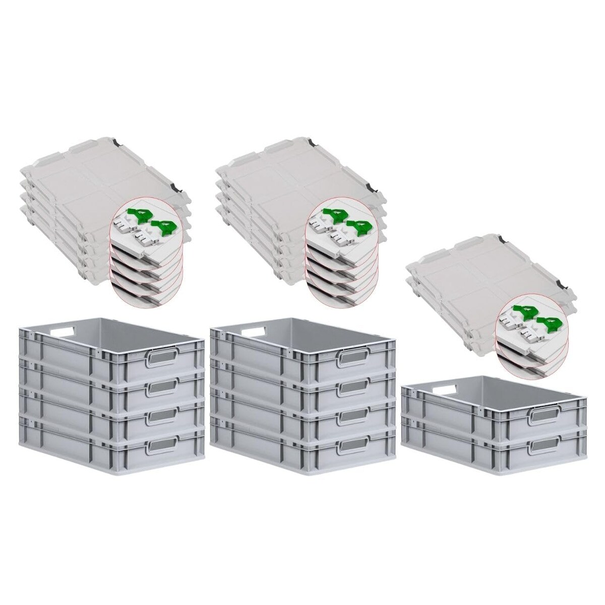 PROREGAL SuperSparSet 16x Eurobox NextGen Economy mit Scharnierdeckel & blauen Verschlüssen, Griffe offen, HxBxT 12x30x40cm, 11L, Eurobehälter, Box