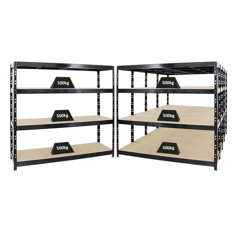 PROREGAL Mega Deal 5x Profi Schwerlastregal Rhino | HxBxT 180x200x60cm | 4 Spanplatten-Ebenen 8mm | Fachlast 500kg | Schwarz