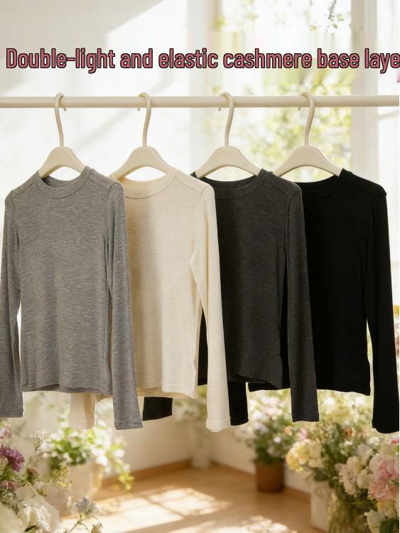 Dames 100% Zuiver Wol Slim Fit Lange Mouw Ronde Hals Basislaag cm