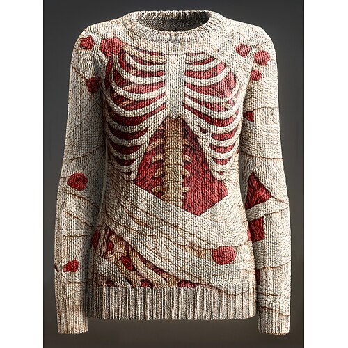 Maglione donna Scheletro Carino Streetwear Grafica Scheletro Collo A Giro Patchwork Maglia Manica Lunga Regolare Top KnitBeige Autunno Inverno