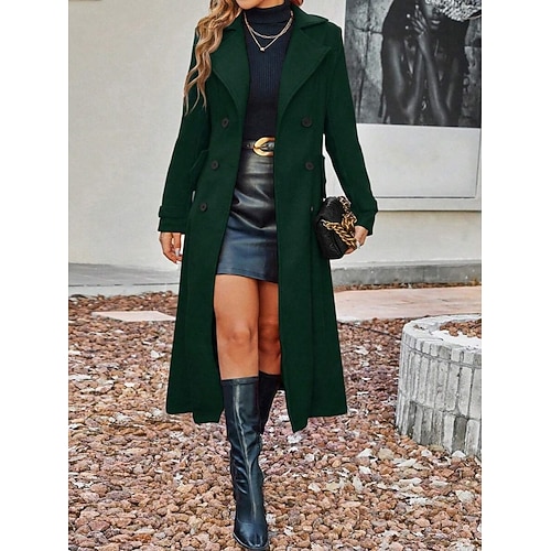 Per donna Cappotto Invernale Confortevole Traspirante Tasca Bottoni Casual Semplice Vacanza Streetwear Casuale Abbigliamento quotidiano Monopetto Lungo Collo ripiegato Vestibilità regolare Manica