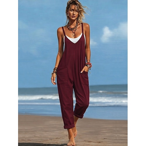 Per donna Normale Tuta Attivo Tinta unica Senza Maniche Scollo a V Tasca Quotidiano Spiaggia Vestibilità comoda Nero Vino Viola Estate