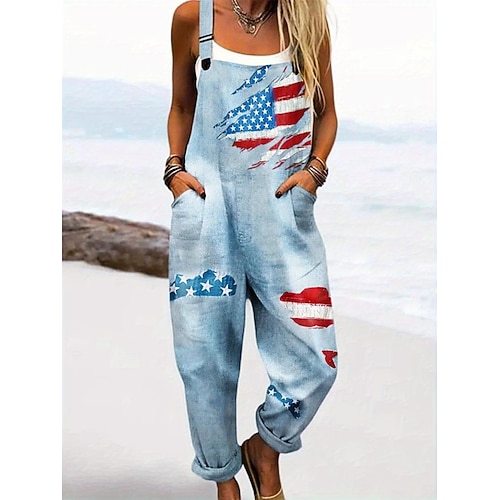 Per donna Giornata dell'indipendenza Attivo Bandiera Nazionale Senza Maniche Senza maniche Collo quadrato Tasca Stampato Quotidiano Vacanza Vestibilità regolare Blu Estate