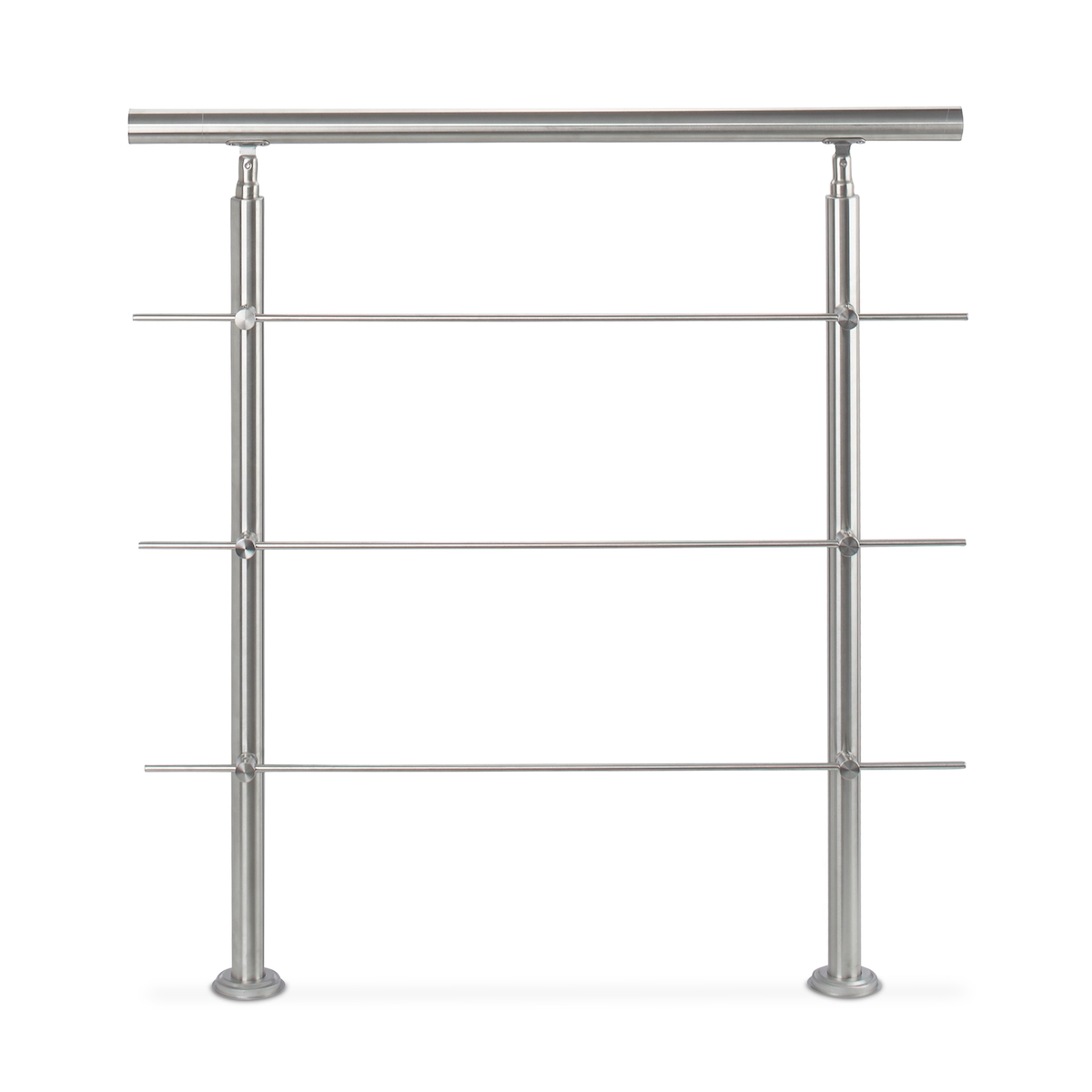 Relaxdays Treppengeländer Edelstahl Set, für Innen und Außen, Handlauf, 1,0 m lang, 2 Pfosten, 3 Querstreben, silber