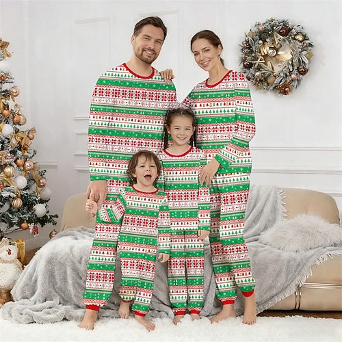 Famiglia Natale Pigiama di Natale per Famiglia Pigiama Set famiglia Grafico Fiocco di neve Casa Stampato Verde scuro Verde Manica Lunga Quotidiano Abiti coordinati