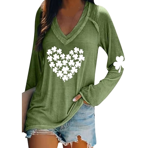 T-shirt da donna per il Giorno di San Patrizio lucky shamrock stilosa classica casual maniche lunghe collo a V top regolari stampa quotidiana verde salvia bianco verde chiaro verde estate primavera