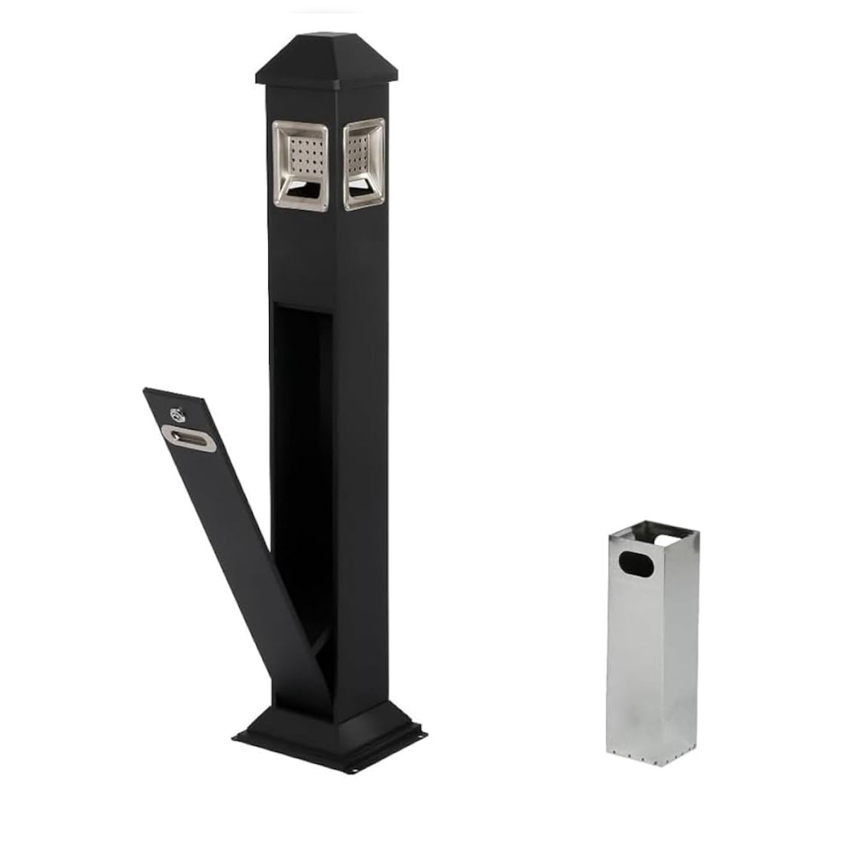 Standaschenbecher für draußen aus Edelstahl 110cm, Schwarz; zum festmontieren