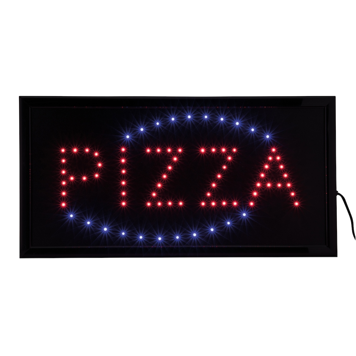 Securit® LED‑Schild – PIZZA – Rot & Blau Blinkend – Schwarz – Inkl. 220V Adapter & 130 cm Kabel