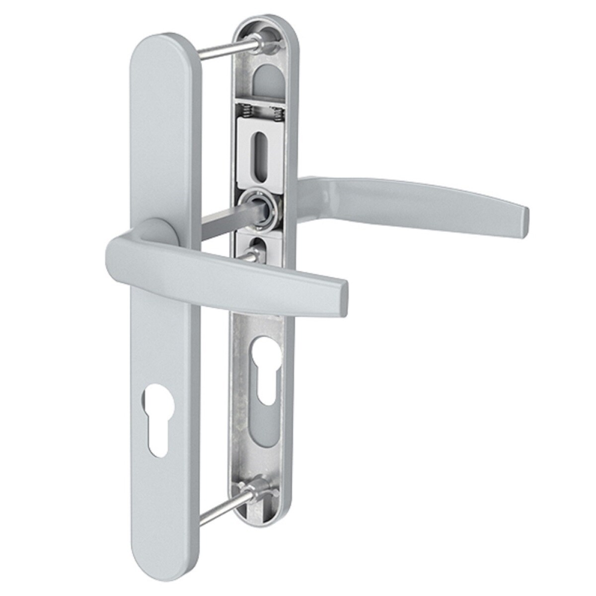 MS Beschläge Silberne Schmalrahmengarnitur 72mm PZ Kernziehschutz Stossgriff/Drücker 39-54mm
