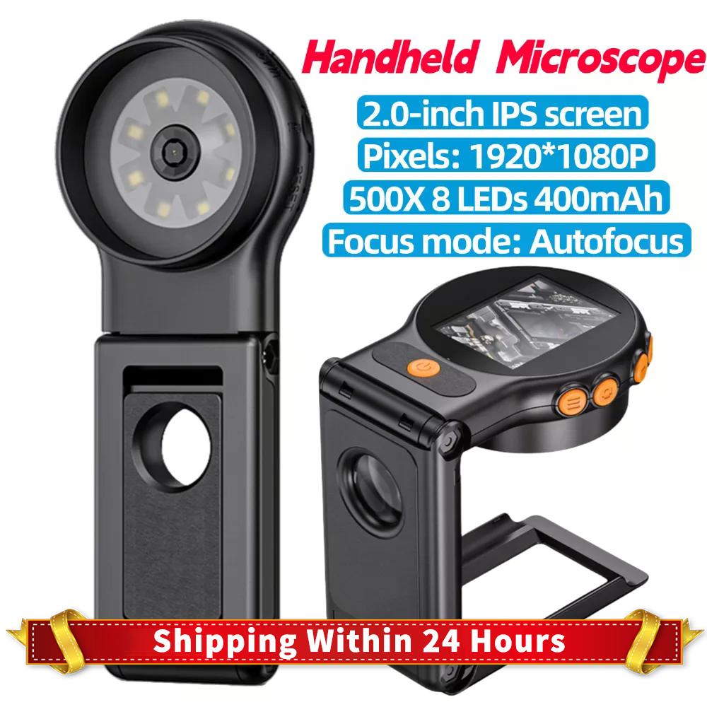 500X Bærbar Håndholdt Digitalt Forstørrelsesmikroskop Utdanningsvitenskap HD Elektronisk Smykkemynt Forstørrelsesglass med Lys Svart