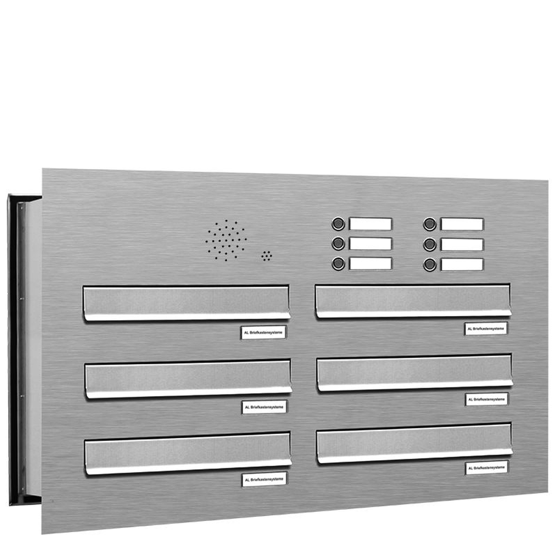 AL Briefkastensysteme 6 Fächer Premium Edelstahl Durchwurf Briefkasten Anlage mit Klingeln, Post A4, robust, wetterfest, Artikelnummer: 132V6DV2KS