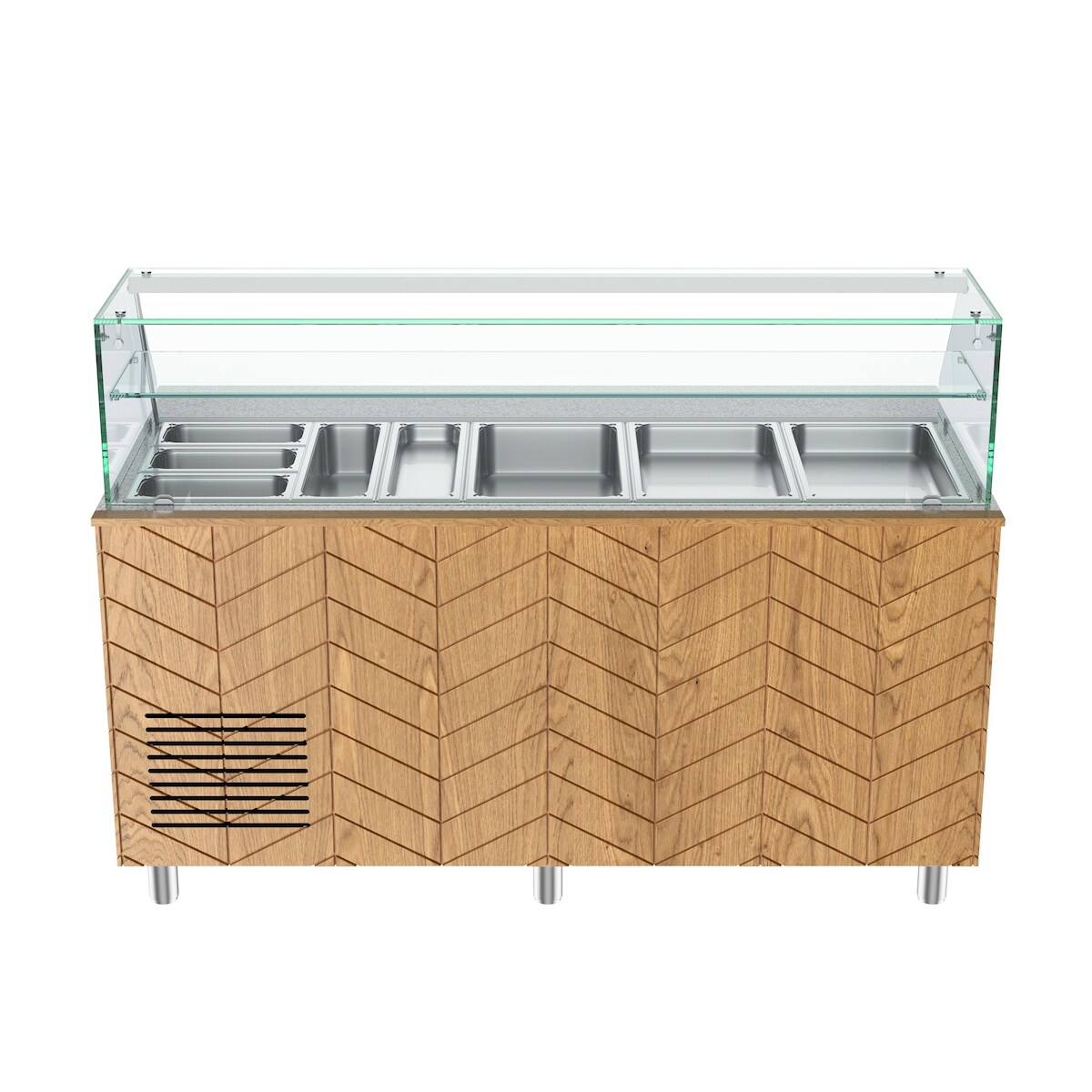 Gastronics Salattheke Premium – Kühltheke mit grauem Granit, Fischgrätenverkleidung LED 5x GN 1/1 und 2 Türen 174 x 70 x 125 cm